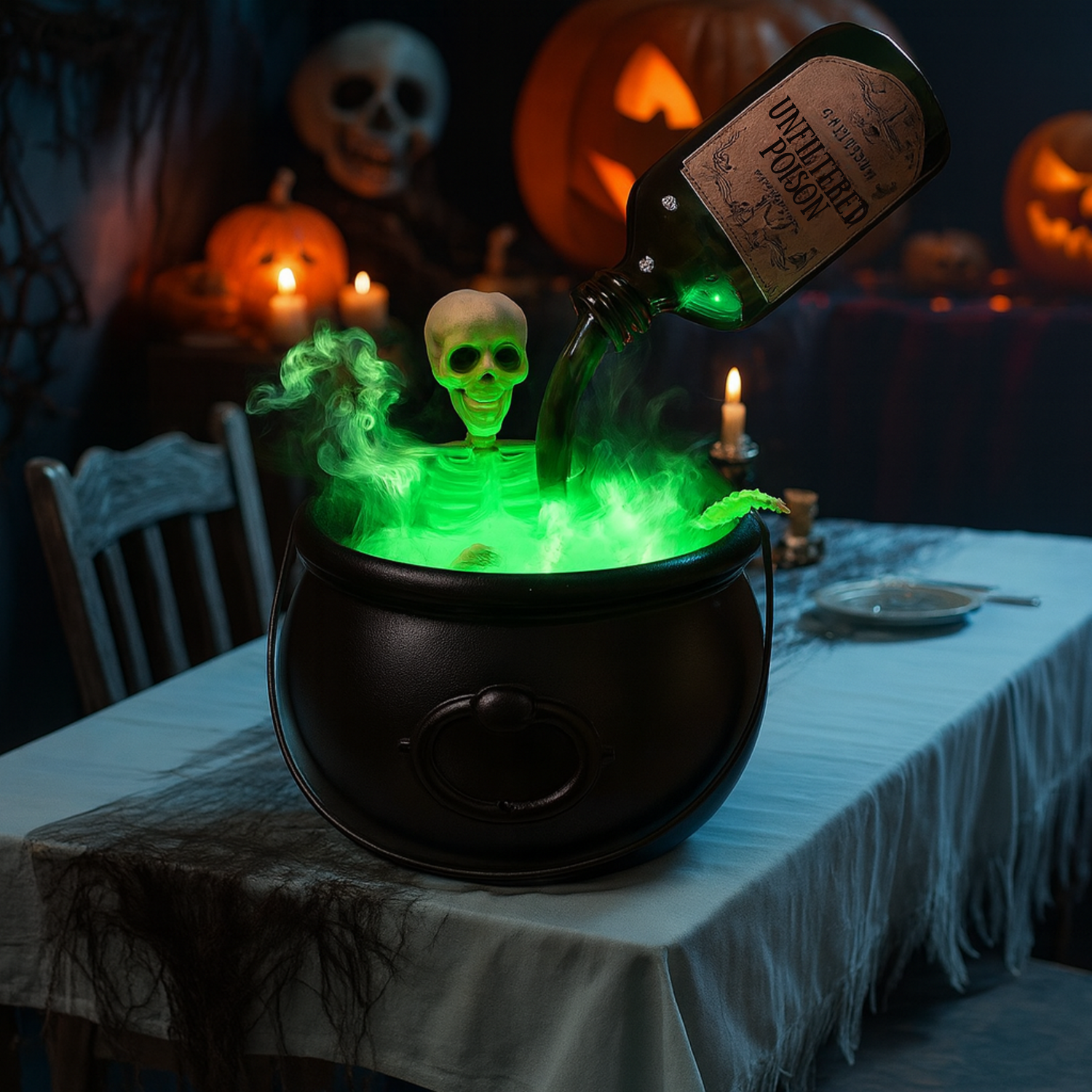 PotionBath is a floating-potion cauldron that turns any room into a mini haunted scene. A bottle appears to pour endlessly while green water vapor and a soft glow surround the skeleton “bath”—all USB-powered with quick, splash-protected setup. Reusable every year for mantles, tables, and party vignettes.